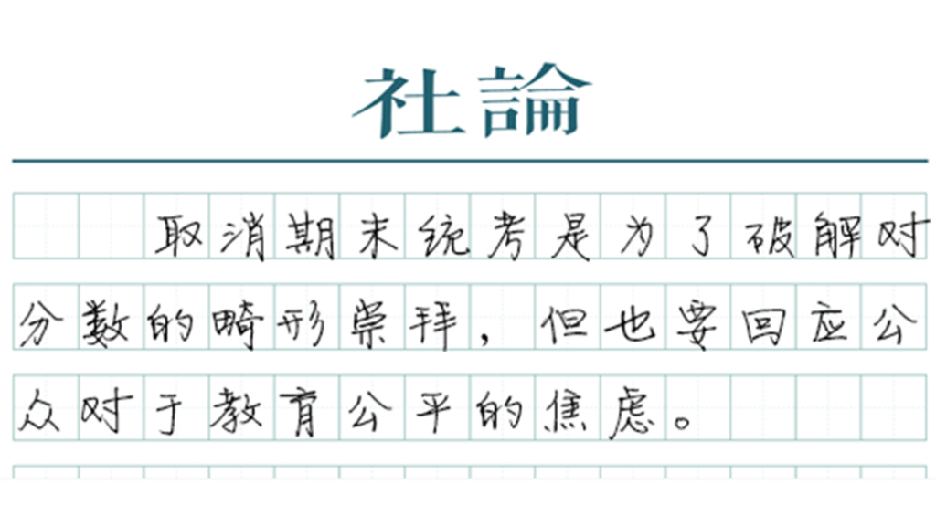 取消期末统考,要是是行为一项恒久步伐救助,就有必要作念进一步考究、完善,使其好像承担得起修订的任务,也要回答家长的躁急。