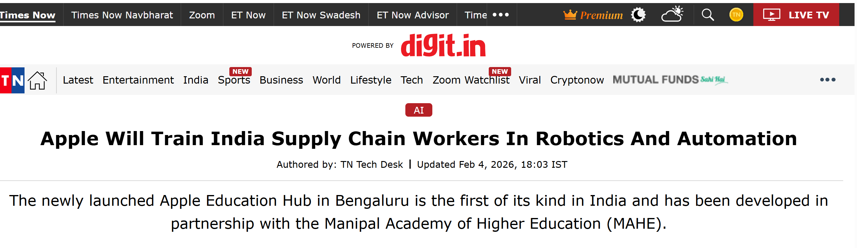【环球网科技玄虚报谈】2月5日音问,据Times Now报谈,苹果公司近日晓示在印度班加罗尔竖立首个教诲中心,并扩张寰宇供应商厂区技巧培养课程体系,握续加大对当地供应链职工本事培训与技巧擢升的干与力度。