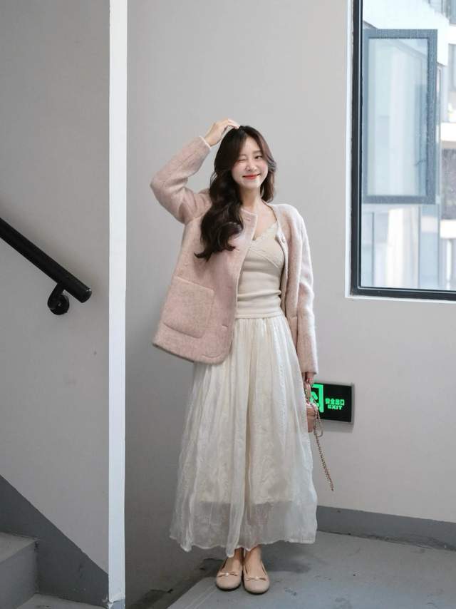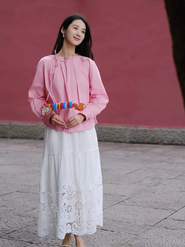 要是思让我方的打扮多添几分渺小青娥气味,不妨学习上头这位前锋达东说念主,用一件粉色的衬衫搭配白色的半身裙,裙摆立体挺阔又自带垂坠感。行走间随风轻扬,灵动又绝不蒙胧。