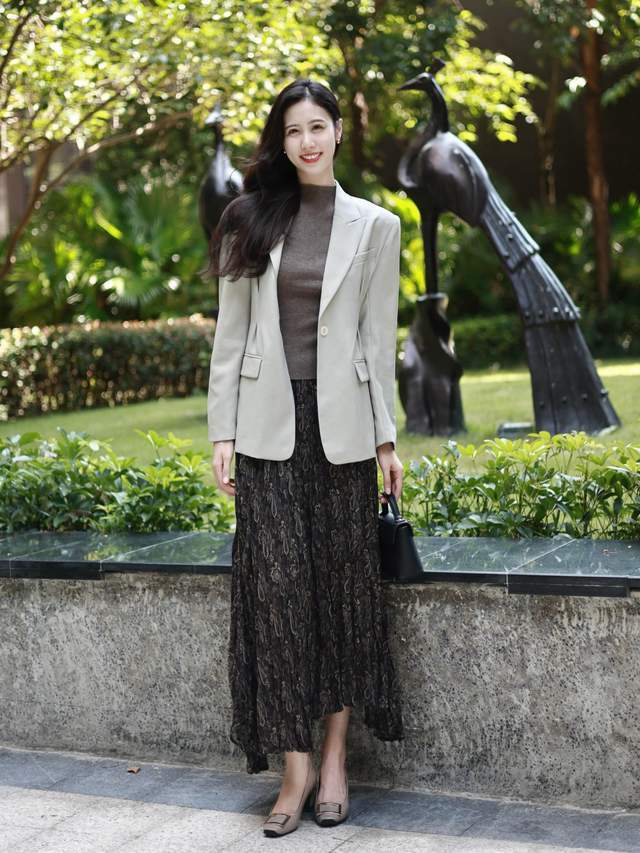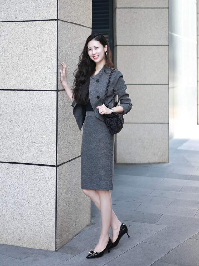 思让我方越来越漂亮,选对衣服,懂得搭配就是最要害的两个法子了。高腰收腰的半身裙搭配上短诚挚上衣和一件利落的西装外衣,就能八成穿出三七分的黄金身材比例,让我方达到显高显瘦的成果。