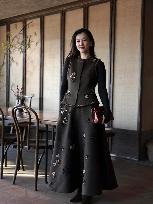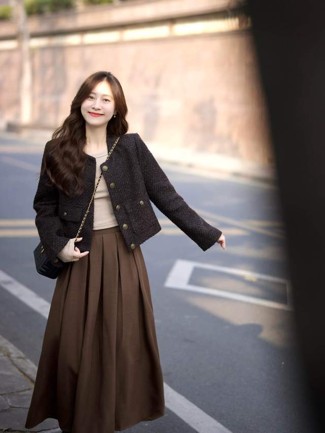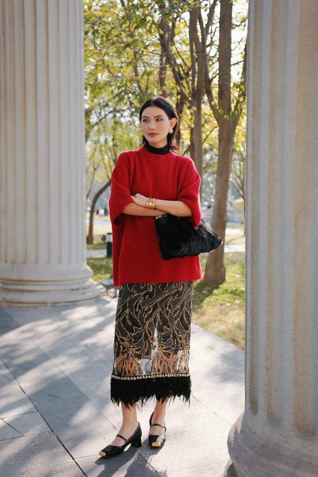 每个东说念主的气质是实足不相同的,穿搭与配饰天然各有分寸。长相偏进修,骨架偏大,身材丰润的女性,不错像上头这位前锋博主相同,给与挺阔有型的小香风马甲,搭配同色系的伞裙,内搭一件玄色诚挚打底衫就弥漫大气了,手里再拎着一只红色的小方包来提亮举座造型的配色,轻熟风恰到平允,开心又典雅。