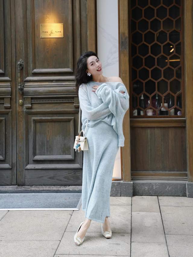 为何这样说呢?如果当你换成一对灰色的老爹鞋通顺鞋来组合诚挚毛衣裙装,根柢无法呈现出这种体恤的女东说念主味。