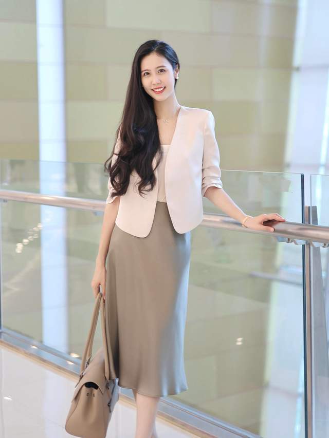 思让我方的穿搭有着干练的气场与开心感也不难,不妨给与一件挺阔有型的浅粉色西装短外衣,搭配上一条高腰收腰款的地面色系真丝半身裙,面料垂坠娇娆,剪裁利落挺拔,刚柔并济。