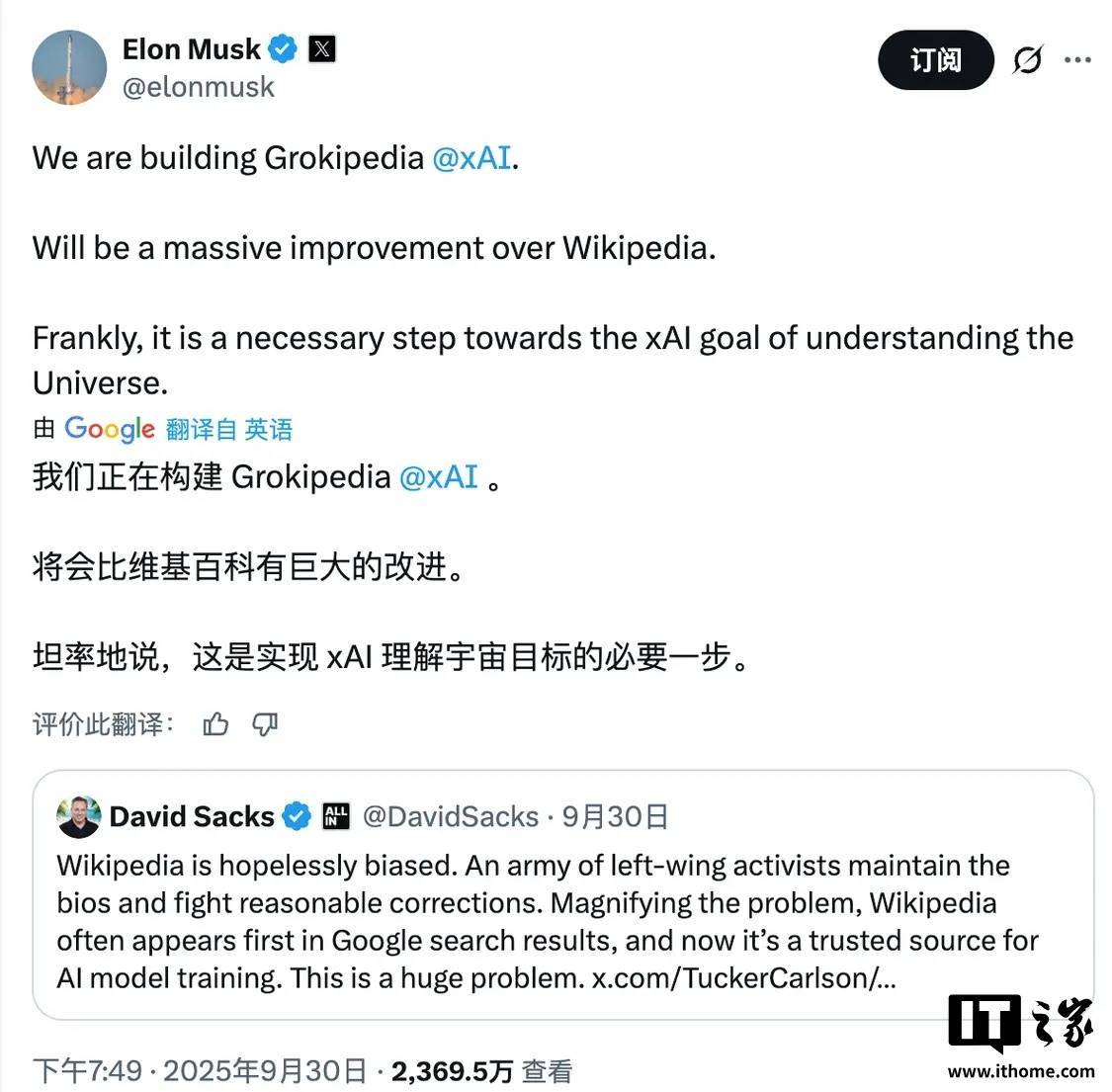 该名堂发起东谈主埃隆・马斯克(Elon Musk)此前曾屡次品评维基百科(Wikipedia),并称 Grokipedia 是“扫尾 xAI 意会天地这一认识的必要范例”。马斯克过头扶直者恒久以来一直谴责维基百科存在偏见。对此,维基百科斡旋独创东谈主吉米・威尔士(Jimmy Wales)曾复兴称,马斯克对这部众包式百科全书的指控“与事实不符”。