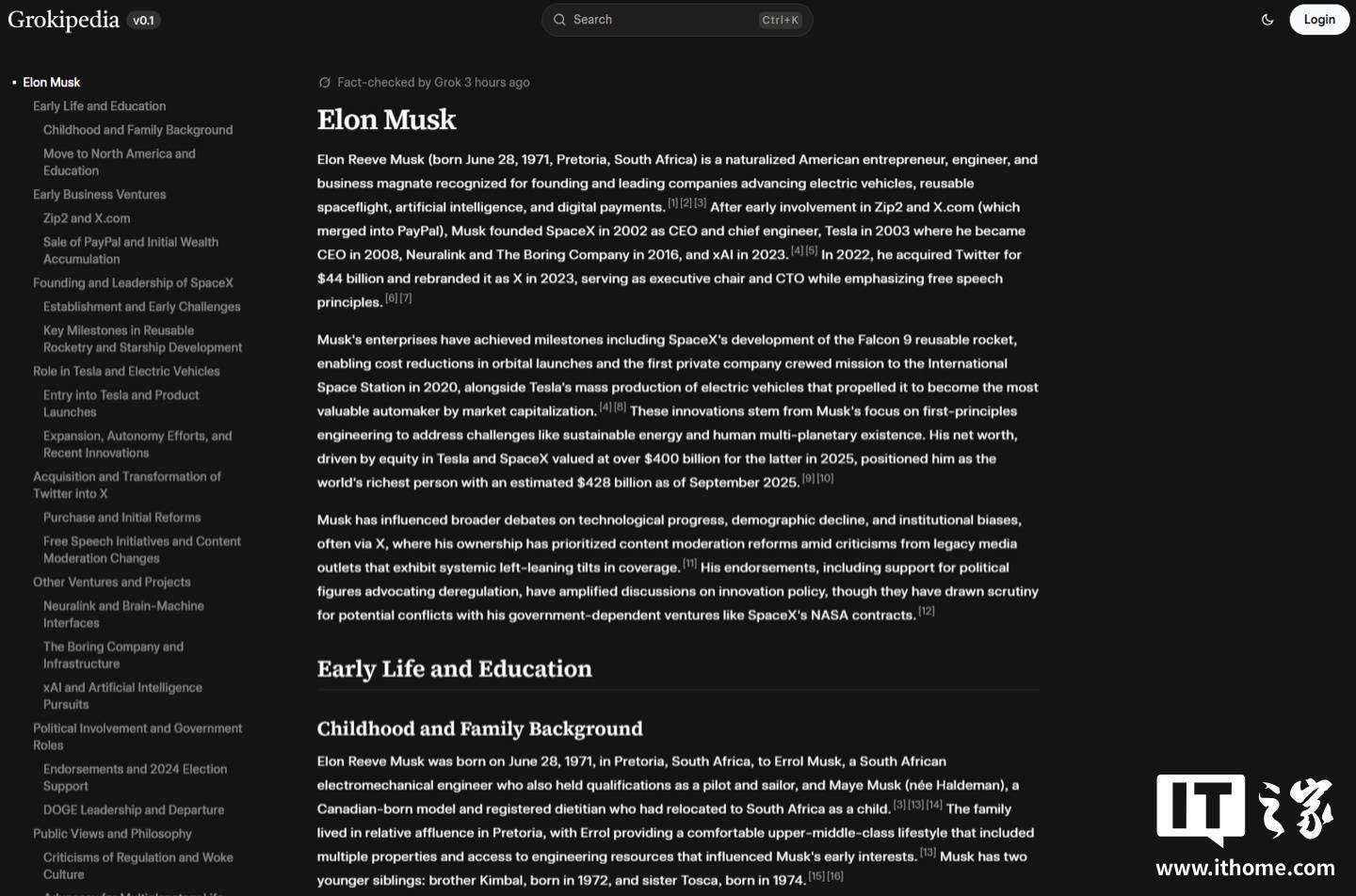 IT之家 10 月 28 日音讯,由 xAI 建造的智能助手 Grok 驱动的在线百科全书“Grokipedia”于当地时辰周一移时上线,但就地崩溃。禁止IT之家发稿时,该网站已规复驱动,其主页上的计数器透露开云kaiyun,平台当今已收录跳动 88.5 万篇著作。
