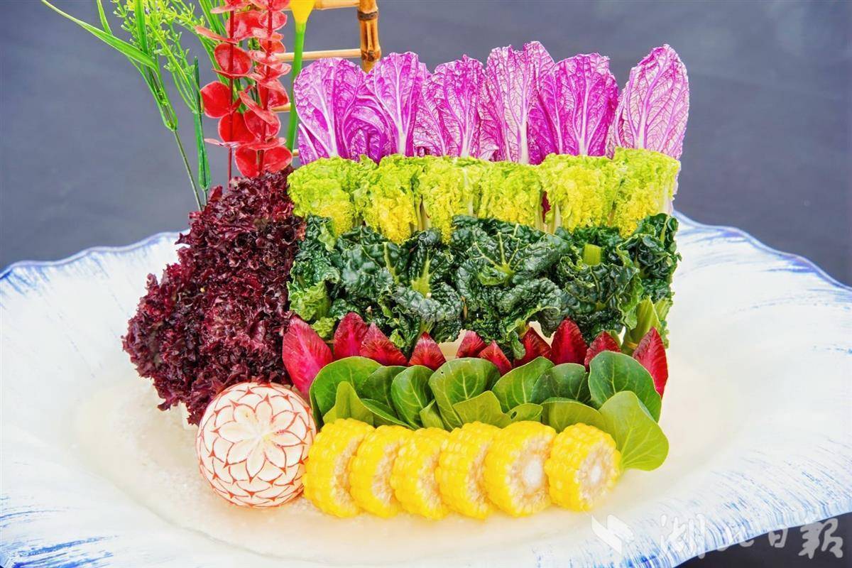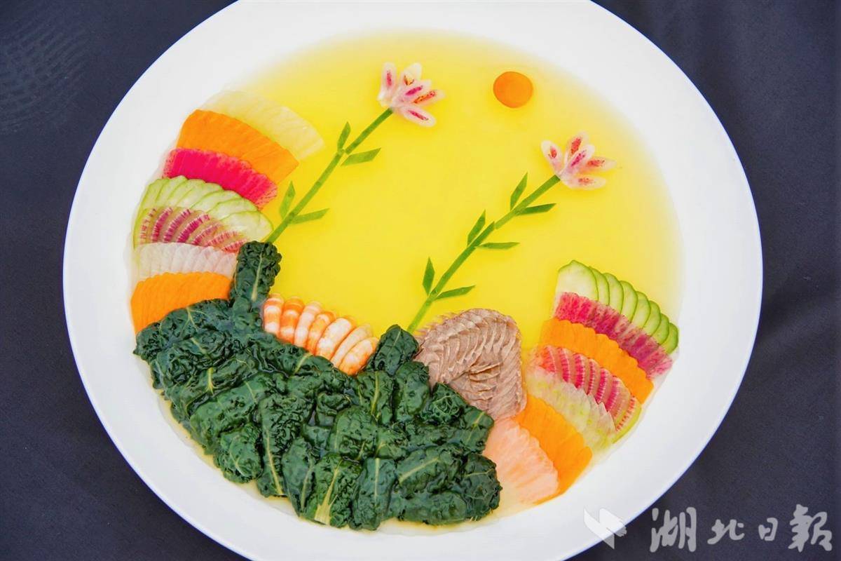 步履现场,随州籍中国烹调巨匠王海东为在场的不雅众端出了一桌极具创意的“泡泡青宴”。彩拼春光如海、郊野时蔬涮、青菜豆腐煲、随州青菜饼……泡泡青的“百变服法”,令东说念主倍感新奇。